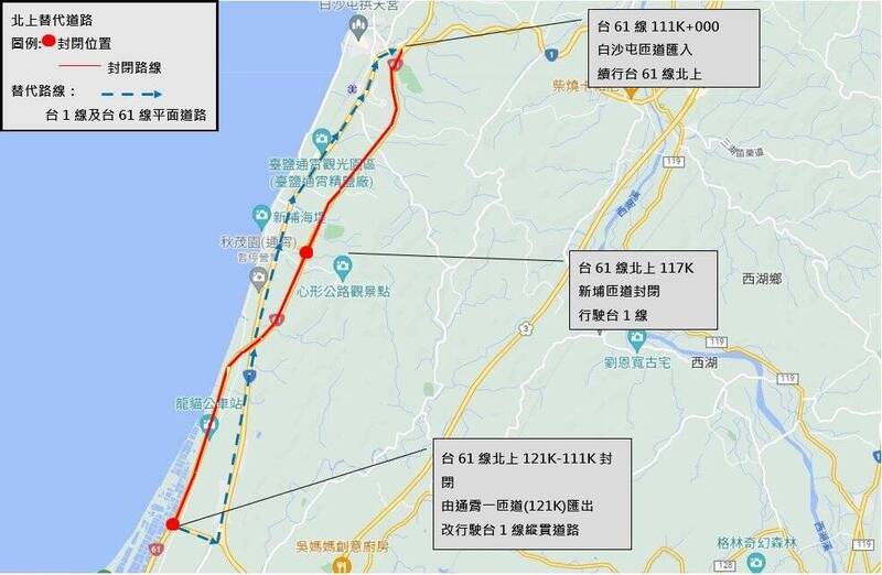 台61線121公里至111公里「北上」主線車道施工 18日封閉9小時