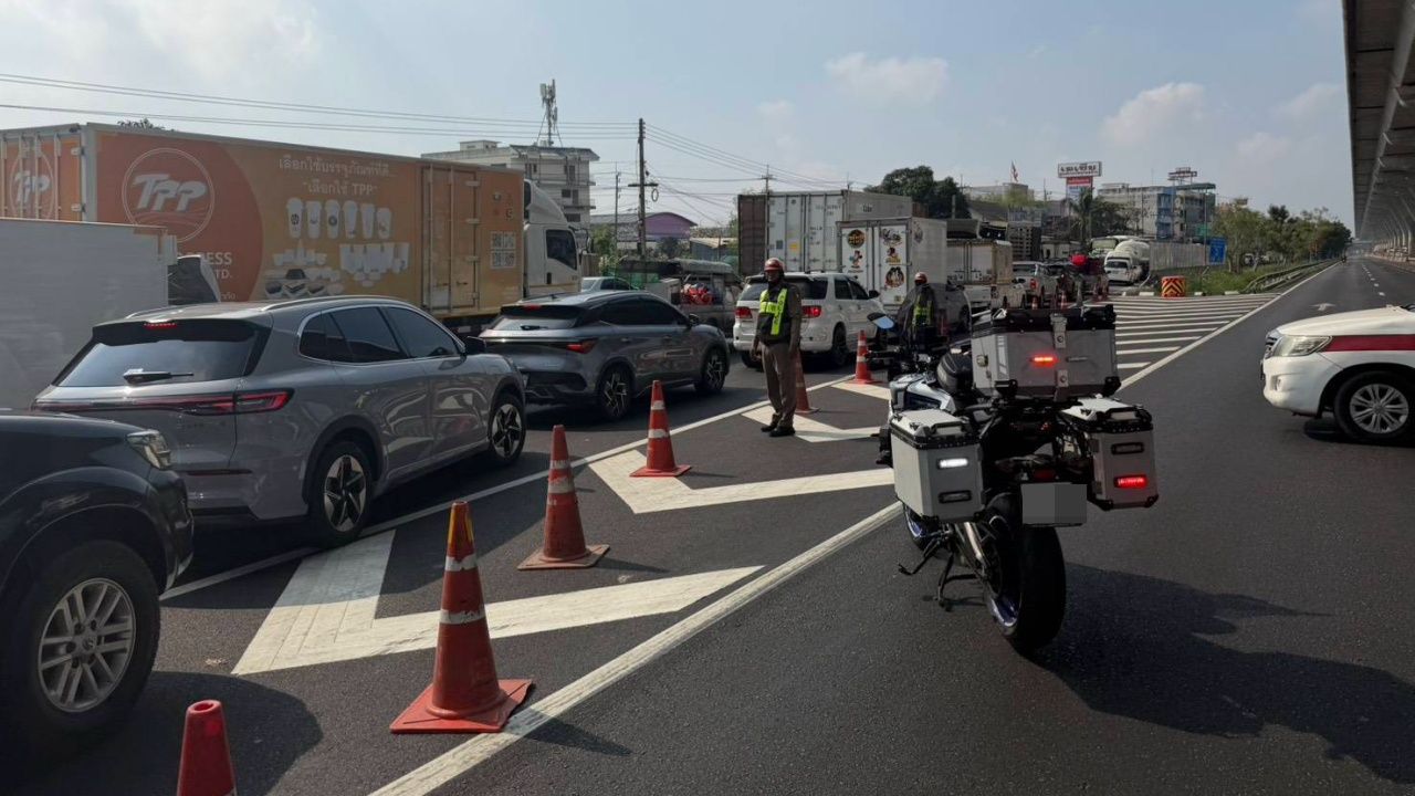 ตำรวจทางหลวง แนะเส้นทางเลี่ยงรถติด ถนนพระราม 2 หลังเกิดเหตุเครนก่อสร้างถล่ม ก่อนข้ามสะพานแม่น้ำท่าจีน อ.เมือง จ.สมุทรสาคร ปิดช่องทางหลัก ทั้งขาเข้า-ขาออก