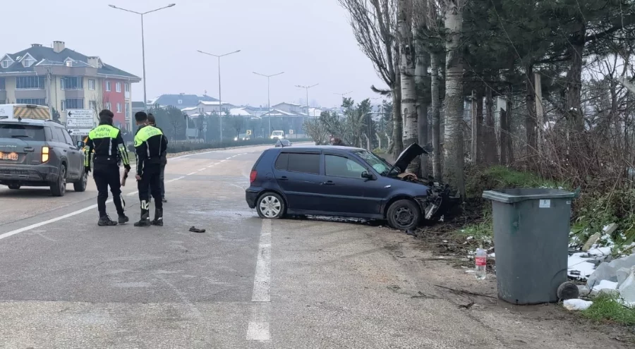 Bursa'da kontrolden çıkan bir otomobilin kaldırıma ve ağaca çarpması sonucu 2 kişi yaralandı. Kaza anı güvenlik kamerasına yansıdı.