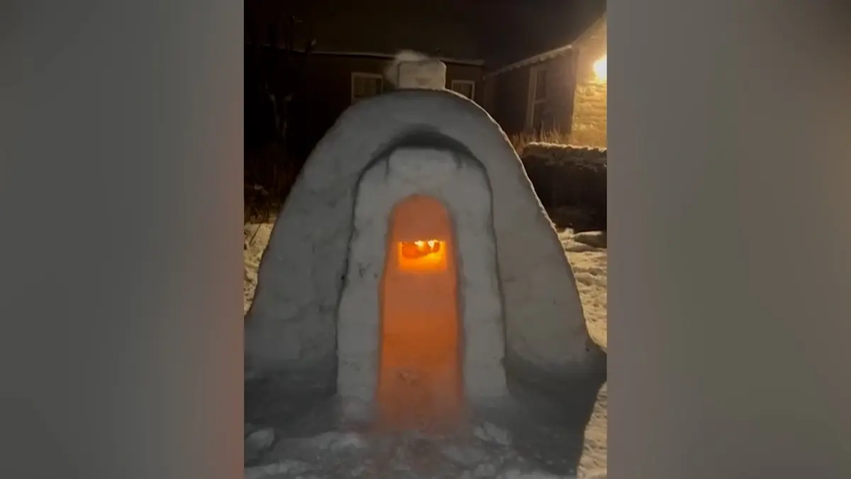 Přívaly sněhu v minulých dnech zasáhly nejenom Česko, ale také například skotské Orkneje. Kameník Kyle Doran z místní osady Twatt tak mohl pro svou tříletou dceru postavit ze sněhu iglú, které následně opatřil funkčním ohništěm a komínem.