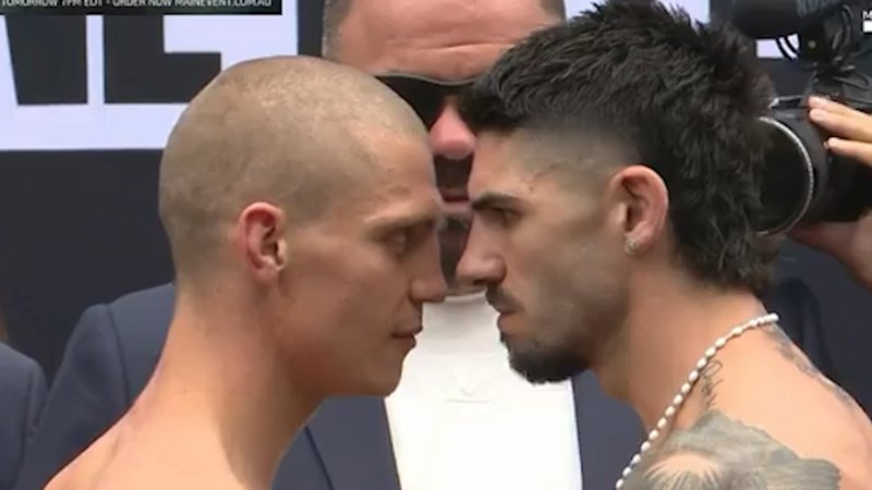 Michael Zerafa and Nikita Tszyu face off ahead of their fight.