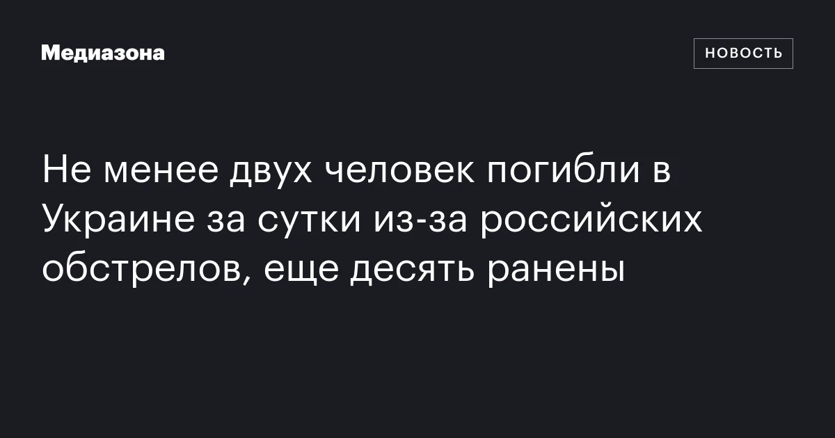 Не менее двух человек погибли в Украине за сутки из‑за российских обстрелов, еще десять ранены