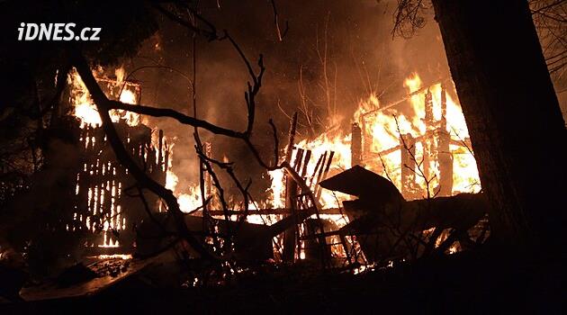 Chata shořela při středečním požáru do základů, okolí hasiči uchránili