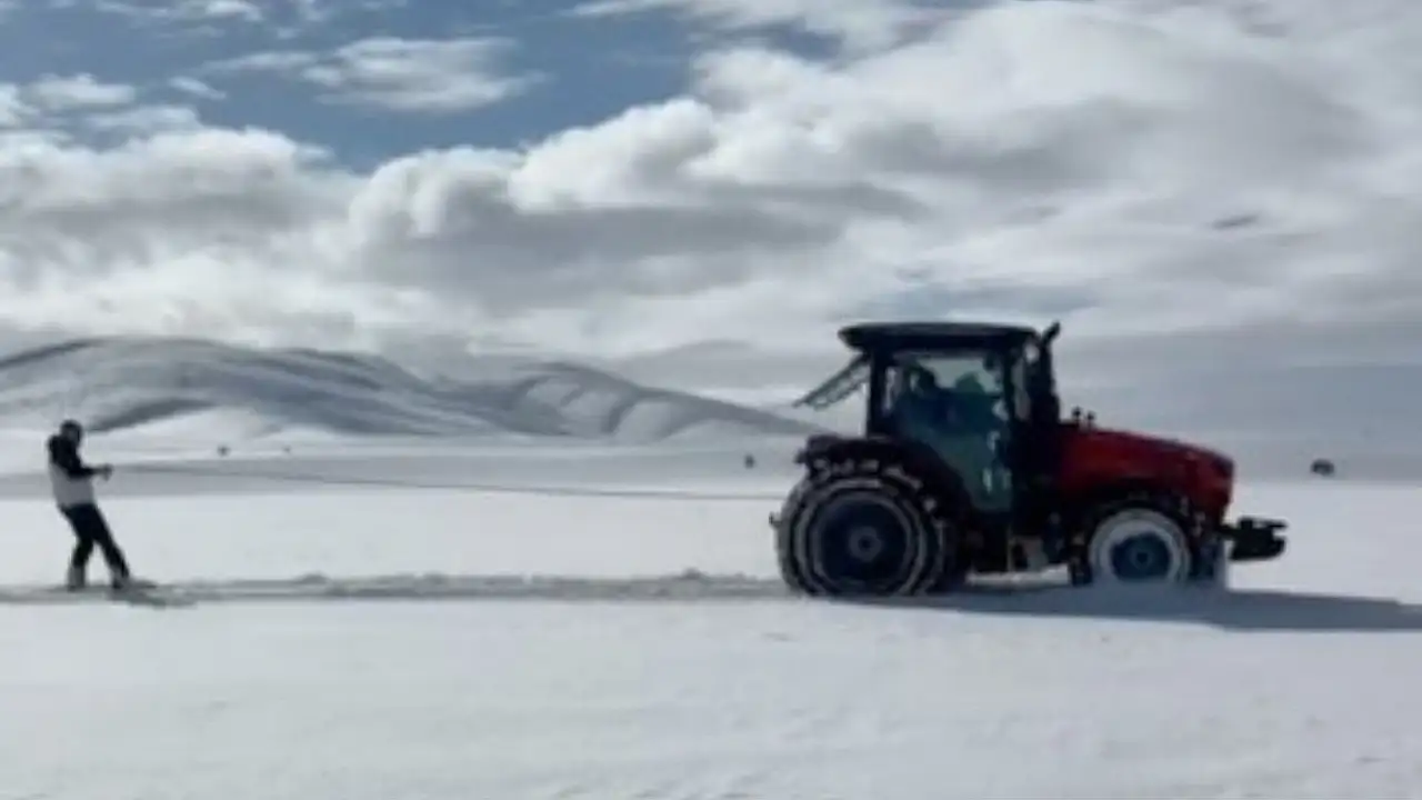 Kayseri'nin Pınarbaşı ilçesinde besici Ramazan Gök traktörün arkasına bağladığı snowboard ile yaptığı kayakla gündem oldu. Detaylar Kayseri Anadolu Haber'de...