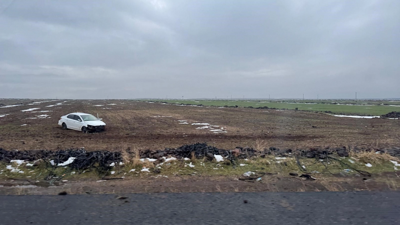 Diyarbakır'ın Bağlar ilçesinde tarlaya uçan otomobilin sürücüsü, kazayı yara almadan atlattı.