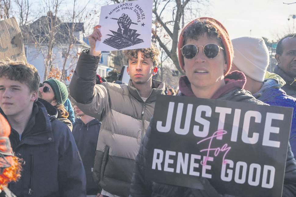People gather at a makeshift memorial at the scene where Renee Nicole Good was killed by a federal immigration agent in Minneapolis, Jan. 9, 2026. The split-screen television images of mass demonstrations in Minneapolis and Tehran have highlighted the president’s disparate views of democracy and popular dissent. (Ryan Murphy/The New York Times) By PETER BAKER President Donald Trump had a ringing message of solidarity on Tuesday for demonstrators in the streets. “KEEP PROTESTING - TAKE OVER...