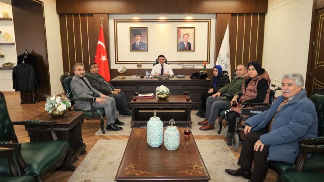 Şanlıurfa Engellileri Yaşatma ve Yardımlaşma Derneği Başkanı Maksut Dügerli ile yönetim kurulu üyeleri, Beyaz Baston Görme Engelliler Haftası dolayısıyla Haliliye Kaymakamı Muhammed Serkan Şahin’i makamında ziyaret etti.