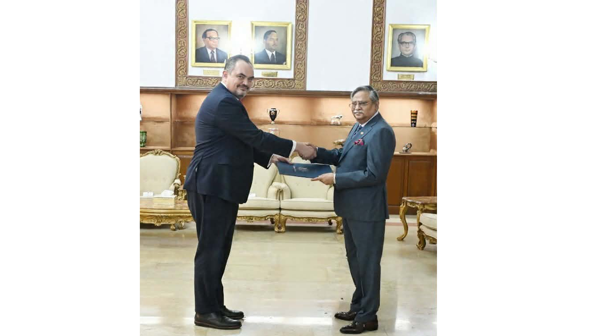 রাষ্ট্রপতি মো. সাহাবুদ্দিনের কাছে পরিচয়পত্র পেশ করেছেন ঢাকায় নবনিযুক্ত মার্কিন রাষ্ট্রদূত ব্রেন্ট ক্রিস্টেনসেন।বৃহস্পতিবার (১৫ জানুয়ারি) দুপুরে বঙ্গভবনে এ সাক্ষাৎ পর্বটি অনুষ্ঠিত হয়। এ সময় যুক্তরাষ্ট্রের নতুন রাষ্ট্রদূতকে স্বাগত জানিয়ে রাষ্ট্রপতি আশা প্রকাশ করেন যে, ভবিষ্যতে উভয়দেশের মধ্যে ব্যবসা, বিনিয়োগ, শিক্ষা ও সাংস্কৃতিক ক্ষেত্রে সম্পর্ক আরও জোরদার হবে। পাশাপাশি যুক্তরাষ্ট্রের নতুন রাষ্ট্রদূত এ বিষয়ে সর্বাত্বক প্রয়াস চালানো এবং বাংলাদেশ-যুক্তরাষ্ট্র সম্পর্ক আরও গভীর, বহুমাত্রিক ও ফলপ্রসূ করার প্রত্যয় ব্যক্ত করেন। যুক্তরাষ্ট্রের নতুন রাষ্ট্রদূত তার দায়িত্ব পালনে রাষ্ট্রপতির সার্বিক সহযোগিতাও কামনা করেন। আরও পড়ুন: বাংলাদেশে ফিরতে পেরে আমি ভীষণ আনন্দিত: নতুন মার্কিন রাষ্ট্রদূত সোমবার (১২ জানুয়ারি) সন্ধ্যায় বিমানবন্দরে নতুন রাষ্ট্রদূতকে স্বাগত জানান মার্কিন দূতাবাস ও পররাষ্ট্র মন্ত্রণালয়ের কর্মকর্তারা। ৯ জানুয়ারি মার্কিন পররাষ্ট্র দপ্তরে শপথ নেন নবনিযুক্ত মার্কিন রাষ্ট্রদূত ক্রিস্টেনসেন। দেশটির ব্যবস্থাপনা ও সম্পদ বিষয়ক উপ-পররাষ্ট্রমন্ত্রী মাইকেল জে রিগাস তাকে শপথবাক্য পাঠ করান তাকে। এরপর ক্রিস্টেনসেনকে স্বাগত জানায় ঢাকার মার্কিন দূতাবাস। ডোনাল্ড ট্রাম্প প্রশাসনের মনোনীতি রাষ্ট্রদূত ক্রিস্টেনসেন ঢাকায় যুক্তরাষ্ট্রের ১৮তম রাষ্ট্রদূত হিসেবে দায়িত্ব পালন করছেন। মার্কিন পররাষ্ট্র দপ্তরের ওয়েবসাইটের তথ্য অনুযায়ী, ব্রেন্ট ক্রিস্টেনসেন যুক্তরাষ্ট্রের ফরেন সার্ভিসের একজন জ্যেষ্ঠ কর্মকর্তা।ঢাকায় মার্কিন দূতাবাসে আগে কাজ করার অভিজ্ঞতা রয়েছে ব্রেন্ট ক্রিস্টেনসেনের। মার্কিন পররাষ্ট্র দপ্তরের ওয়েবসাইটের তথ্য অনুযায়ী, ব্রেন্ট ক্রিস্টেনসেন ২০১৯ থেকে ২০২১ সাল পর্যন্ত ঢাকায় মার্কিন দূতাবাসে রাজনৈতিক ও অর্থনৈতিক বিষয়ক কাউন্সেলর হিসেবে দায়িত্ব পালন করেছেন। ঢাকায় সবশেষ মার্কিন রাষ্ট্রদূত ছিলেন পিটার হাস। তিনি ঢাকায় যুক্তরাষ্ট্রের ১৭তম রাষ্ট্রদূত হিসেবে দায়িত্ব পালন করেন। ২০২২ সালের মার্চ থেকে ২০২৪ সালের এপ্রিল পর্যন্ত তিনি ঢাকায় দায়িত্ব পালন করেন।