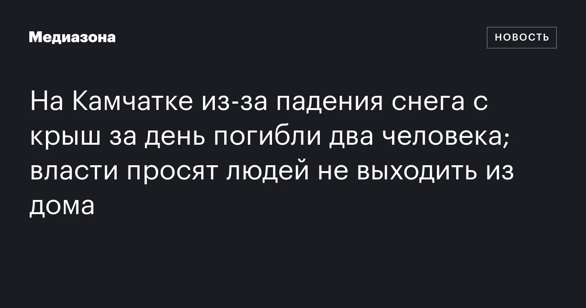 На Камчатке из‑за падения снега с крыш за день погибли два человека; власти просят людей не выходить из дома