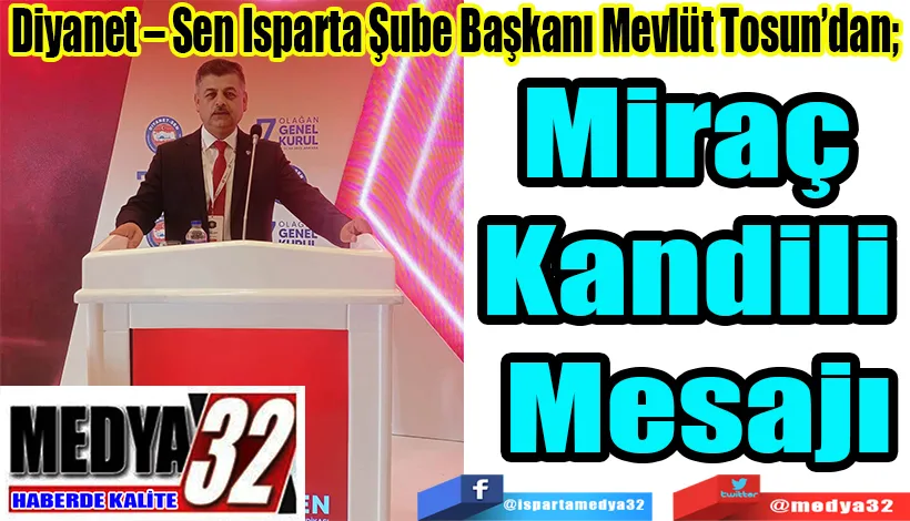 Diyanet – Sen Isparta Şube Başkanı Mevlüt Tosun’dan; Miraç Kandili Mesajı