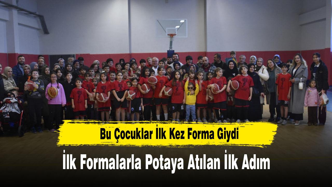 Afyon Gençlik Spor Kulübü tarafından U-8, U-9, U-10, U-11 ve U-12 yaş gruplarında basketbola ilk kez adım atan çocuklar hem forma giydi, hem de pasta yedi.