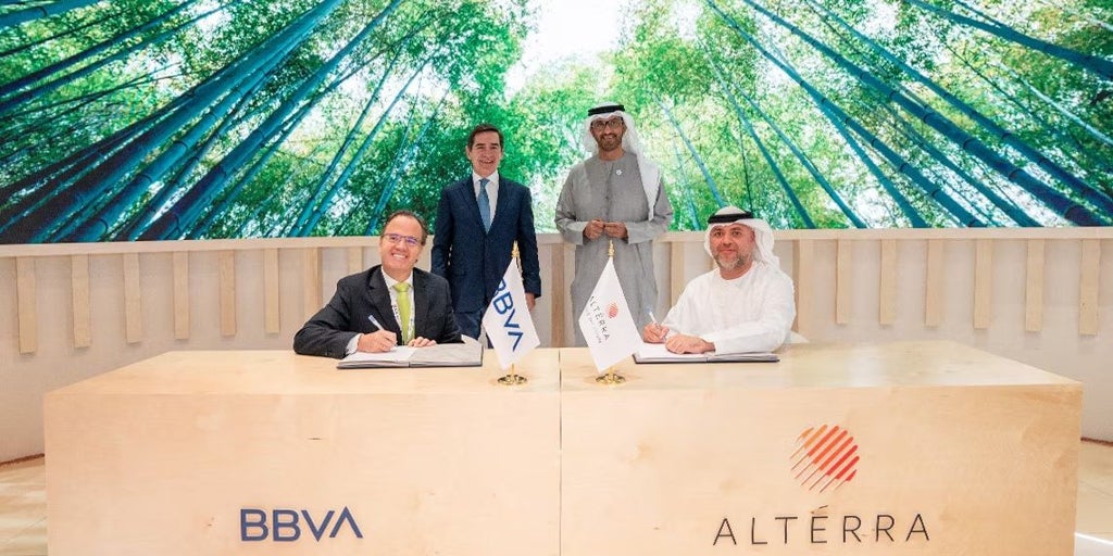 BBVA ha firmado con Altérra, uno de los mayores vehículos privados de inversión en financiación climática del mundo, una alianza mediante la cual el banco vasco se compromete a invertir 250 millones de dólares como «inversor estratégico en un vehículo de coinversión climática que Altérra tiene previsto lanzar, sujeto a las aprobaciones regulatorias pertinentes»; en total, el fondo está previsto que cuente con 1.200 millones de dólares. «Esta alianza refleja el reconocimiento y el interés de BBVA en la estrategia y capacidades diferenciadas de Altérra y respalda la aspiración del banco de avanzar en su estrategia de financiación sostenible y su creciente interés en Oriente Medio», añade la entidad en nota de prensa. Además de esta inversión, el banco ha puesto sobre la mesa hasta la fecha aproximadamente 300 millones de euros en fondos climáticos centrados en la descarbonización, como parte de su estrategia climática global. BBVA se ha fijado el objetivo de movilizar 700.000 millones de euros en negocio sostenible entre 2025 y 2029 . El fondo -denominado Altérra Opportunity - implementará una estrategia de inversión global diversificada en infraestructuras alineadas con el clima, a través de capital y crédito privado. «Su estrategia refleja un enfoque inversor orientado a obtener rentabilidades superiores una vez ajustadas al riesgo y un impacto climático positivo, tanto en mercados desarrollados como emergentes. El fondo se destinará a inversiones en clima desde la transición energética, descarbonización industrial, hasta tecnología climática o estilos de vida sostenibles. Su alcance incluirá América del Norte, América Latina y Europa, además de mercados de crecimiento», recoge el comunicado. Dada la importancia del hito para ambas compañías, en la firma han estado presentes S.E. Dr. Sultan Al Jaber, presidente de Altérra y Carlos Torres Vila , presidente de BBVA, en la capital de Emiratos Árabes Unidos, Abu Dabi. Carlos Torres ha afirmado: «Esta alianza está alineada con la estrategia de BBVA de hacer de la sostenibilidad un motor clave de crecimiento diferencial a nivel global y de profundizar nuestra presencia en centros de financiación climática de rápido crecimiento como Abu Dabi . Consideramos a Altérra un socio a largo plazo para movilizar capital a gran escala y esta alianza refleja nuestra confianza en su trayectoria y su estrategia centrada en el clima». S.E. Dr. Sultan Al Jaber, por su parte, ha destacado que este fondo supone un gran avance en su «siguiente etapa de crecimiento y profundizar en nuestra capacidad para movilizar y desplegar capital global hacia inversiones de alto impacto. Nuestra alianza con BBVA supone un paso importante para reforzar la colaboración global en energía limpia, infraestructura sostenible e inversiones en tecnología, lo que nos permitirá continuar respaldando oportunidades de alta calidad y entregar valor a largo plazo». Para la entidad financiera, esto supone un paso más en su compromiso con el negocio y las inversiones en Oriente Medio , una «región estratégica para la actividad de banca corporativa y de inversión» . El objetivo del banco, así, pasa por acompañar a clientes institucionales y corporativos con presencia internacional en sus inversiones. Precisamente hace poco el banco recibió la aprobación inicial otorgada por la Autoridad Reguladora de Servicios Financieros del ADGM para la apertura de una nueva sucursal de BBVA en Abu Dabi, «lo que permitirá al banco ampliar su oferta de banca mayorista en la región y potenciar su servicio para clientes corporativos e institucionales a nivel local y vinculándolos con las capacidades de la red internacional de BBVA».