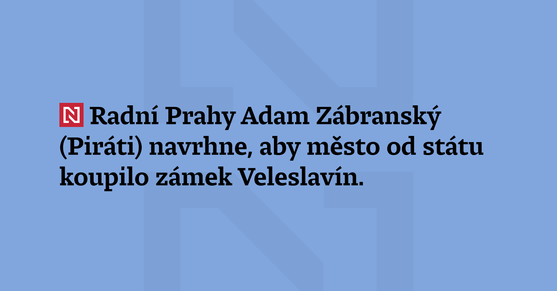 Radní Prahy Adam Zábranský (Piráti) navrhne, aby město od státu koupilo zámek Veleslavín. Cena 210 milionů korun po neúspěšných dražbách je už přijatelná, míní. (ČTK)