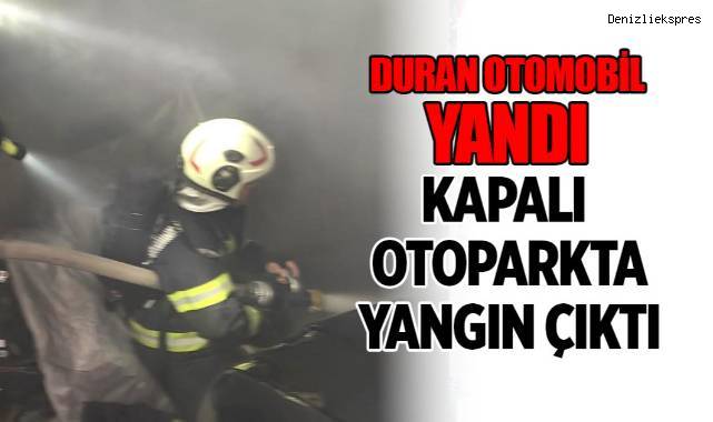 Kapalı otoparkta duran otomobile alevler sarsı