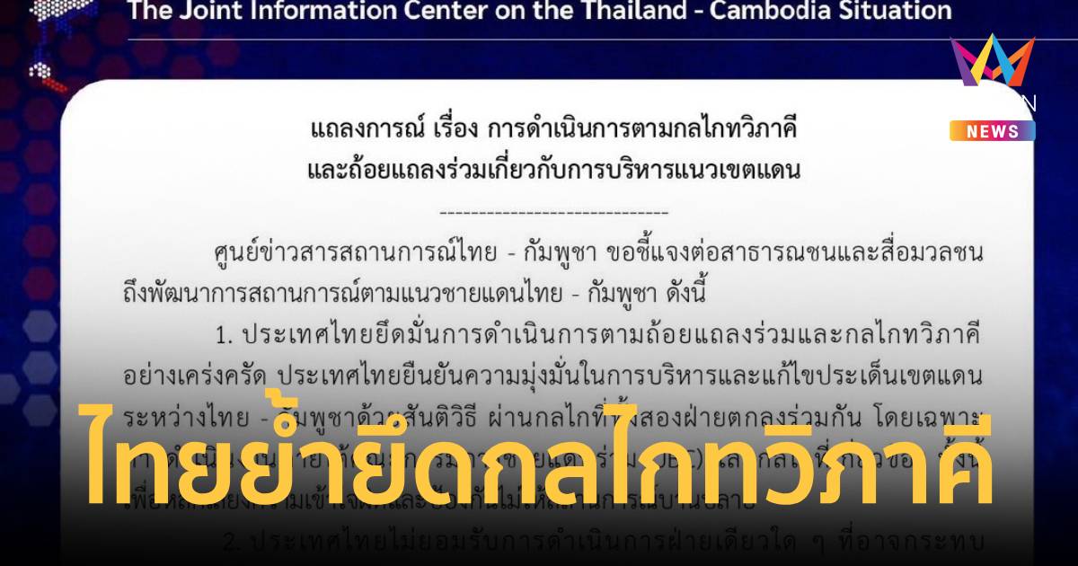 ศูนย์ข่าวสารฯไทย–กัมพูชา แถลง ไทยยึดกลไกทวิภาคีแก้ปมเขตแดนและ ไม่ยอมรับการกระทำฝ่ายเดียว ขอให้ทุกฝ่ายหลีกเลี่ยงการยั่วยุ
