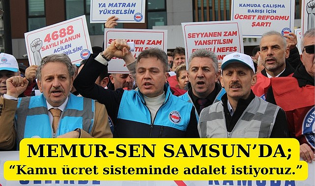 SAMSUN HABERLERİ... 2026 yılının ilk maaş ödeme gününde Memur-Sen Samsun İl Temsilciliği, Samsun Vergi Dairesi önünde basın açıklaması yaparak kamu ücret sistemindeki adaletsizliği protesto etti.