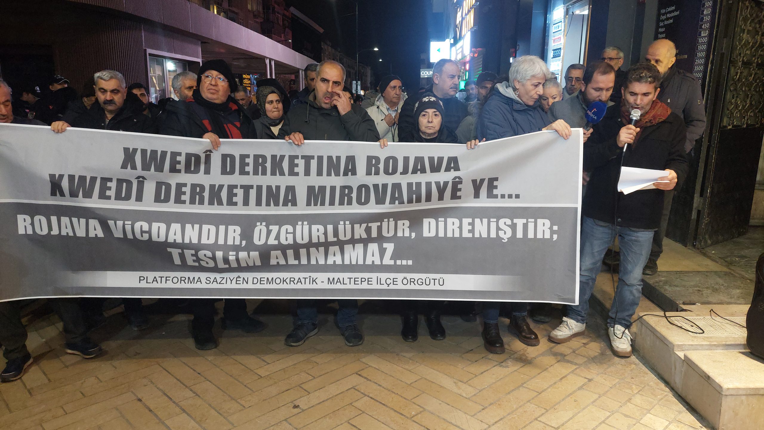 PİRHA – Kuzey ve Doğu Suriye’nin yanı sıra Halep’te yapılan saldırılar, İstanbul’da protesto edildi. DEM Parti Maltepe İlçe örgütü tarafından yapılan basın açıklamasında “Kürt halkının dostlarına ve demokrasi güçlerine açık çağrımızdır: Kürt halkını yalnız bırakmayın. Şêxmeqsûd ve Eşrefiyê’de neredeyse elleri ile direnen halka dayatılan bu alçakça saldırıların tekrarlanmasına izin vermeyin” denildi. Video eklenecek. Rojava’ya yönelik […] The post Rojava’daki saldırılara İstanbul’dan tepki: Özerk Yönetim iradesinin yanındayız-VİDEO appeared first on PİRHA .