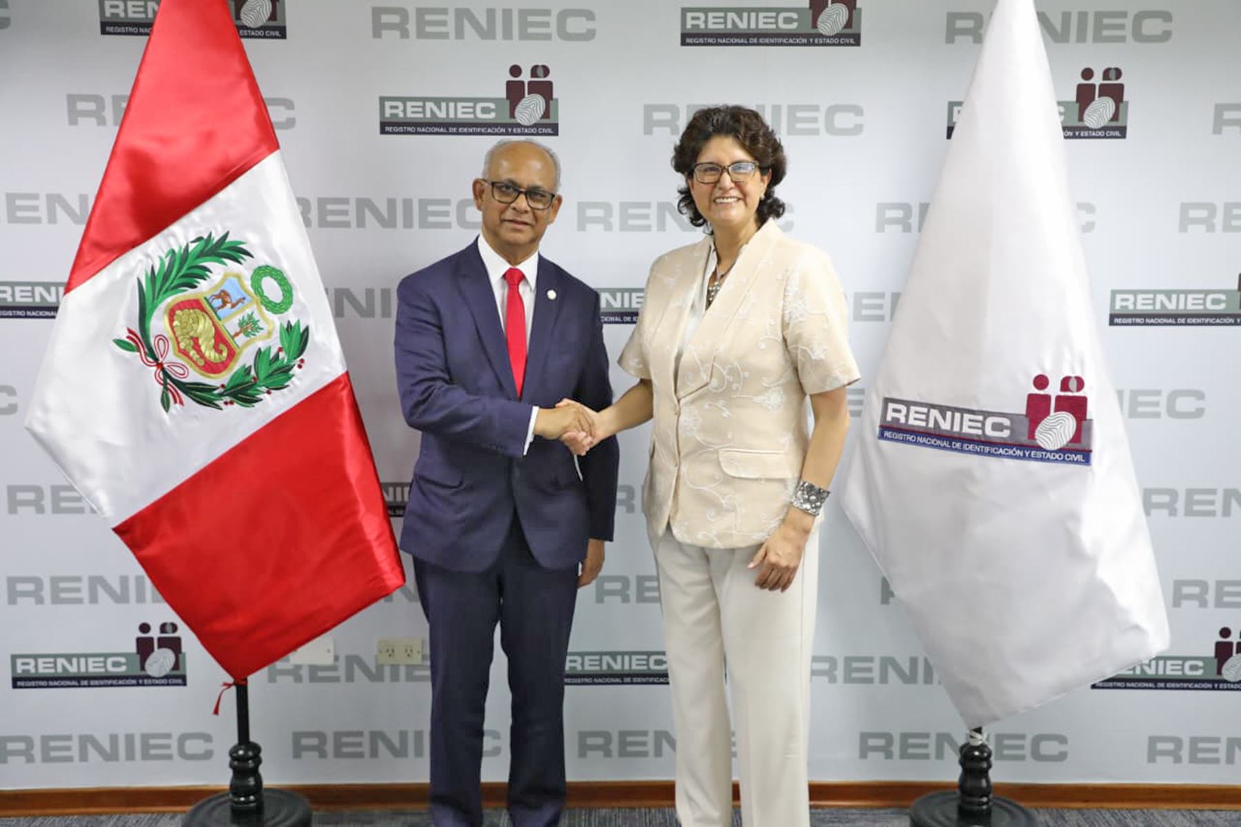 La jefa nacional del Registro Nacional de Identificación y Estado Civil (Reniec), Carmen Velarde, se reunió en Lima con el secretario general de la Organización de Estados Americanos (OEA), Albert Ramdin, para abordar diversos temas referentes a la institución.