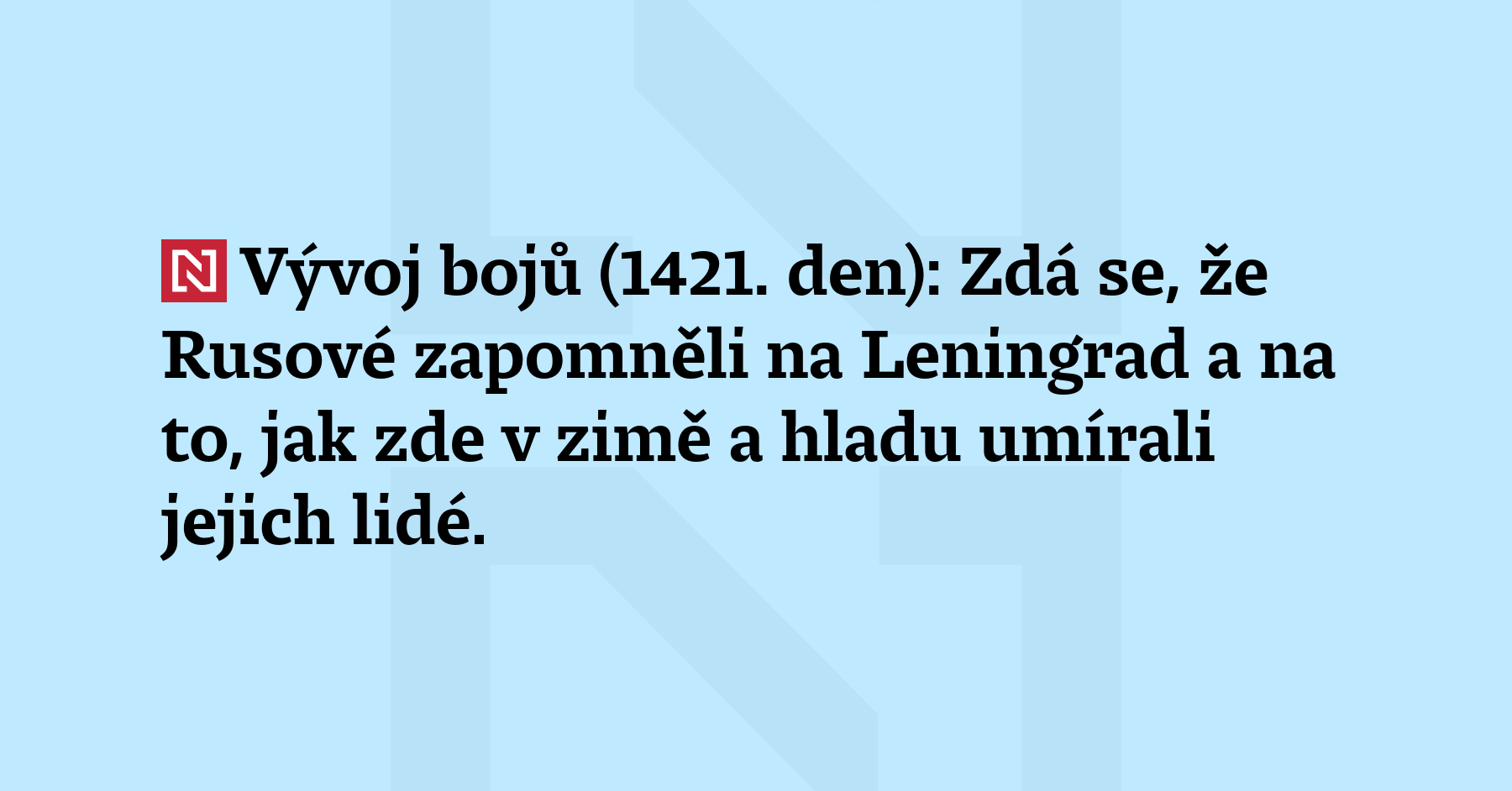Vývoj bojů (1421. den): Zdá se, že Rusové zapomněli na Leningrad a na to, jak zde v zimě a hladu umírali jejich lidé. Když teď vidí, jak v Kyjevě mrznou Ukrajinci, radují se. Ruská armáda tu nadále úspěšně překonává protivzdušnou obranu a ve velkém útočí na energetickou infrastrukturu.