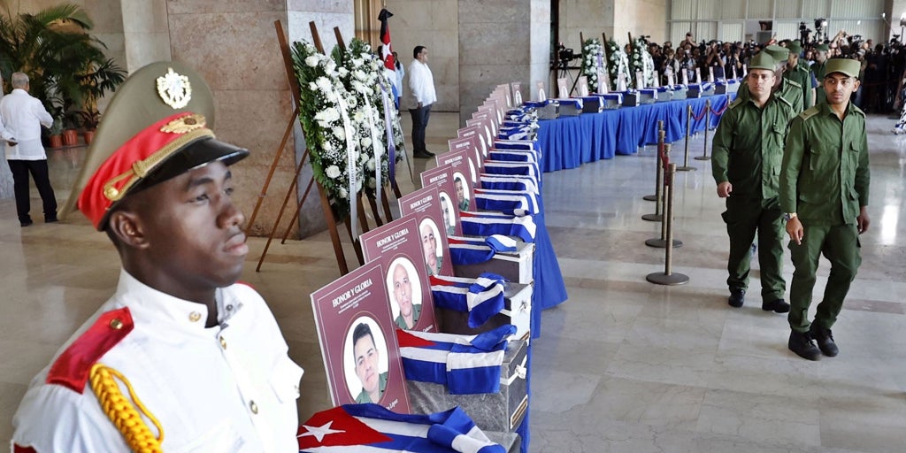 Este jueves llegaron a Cuba los restos de los 32 militares cubanos fallecidos en Venezuela el pasado tres de enero tras los ataques de Estados Unidos que resultaron en la captura de Nicolás Maduro y su esposa, Cilia Flores. Las autoridades cubanas realizaron en el Aeropuerto Internacional José Martí, de La Habana, una ceremonia militar a la que asistió Raúl Castro. Esta constituye la primera aparición pública del dictador tras la captura de Maduro. También asistió el mandatario Miguel Díaz-Canel, el primer ministro Manuel Marrero , y las máximas autoridades de la Isla. En las imágenes difundidas por la televisión estatal, se observaban pequeños féretros cubiertos por banderas cubanas, custodiados y trasladados por una guardia de honor. El régimen ha... Ver Más