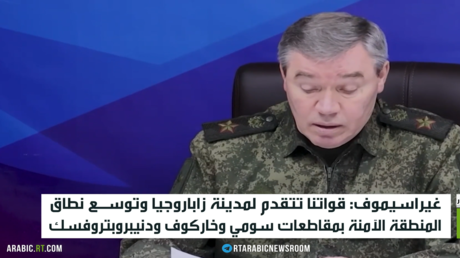 أكد رئيس هيئة الأركان العامة للقوات المسلحة الروسية فاليري غيراسيموف، تقدم القوات الروسية باتجاه مدينة زاباروجيا وتوسيع المنطقة الآمنة في مقاطعات سومي وخاركوف ودنيبروبتروفسك.
