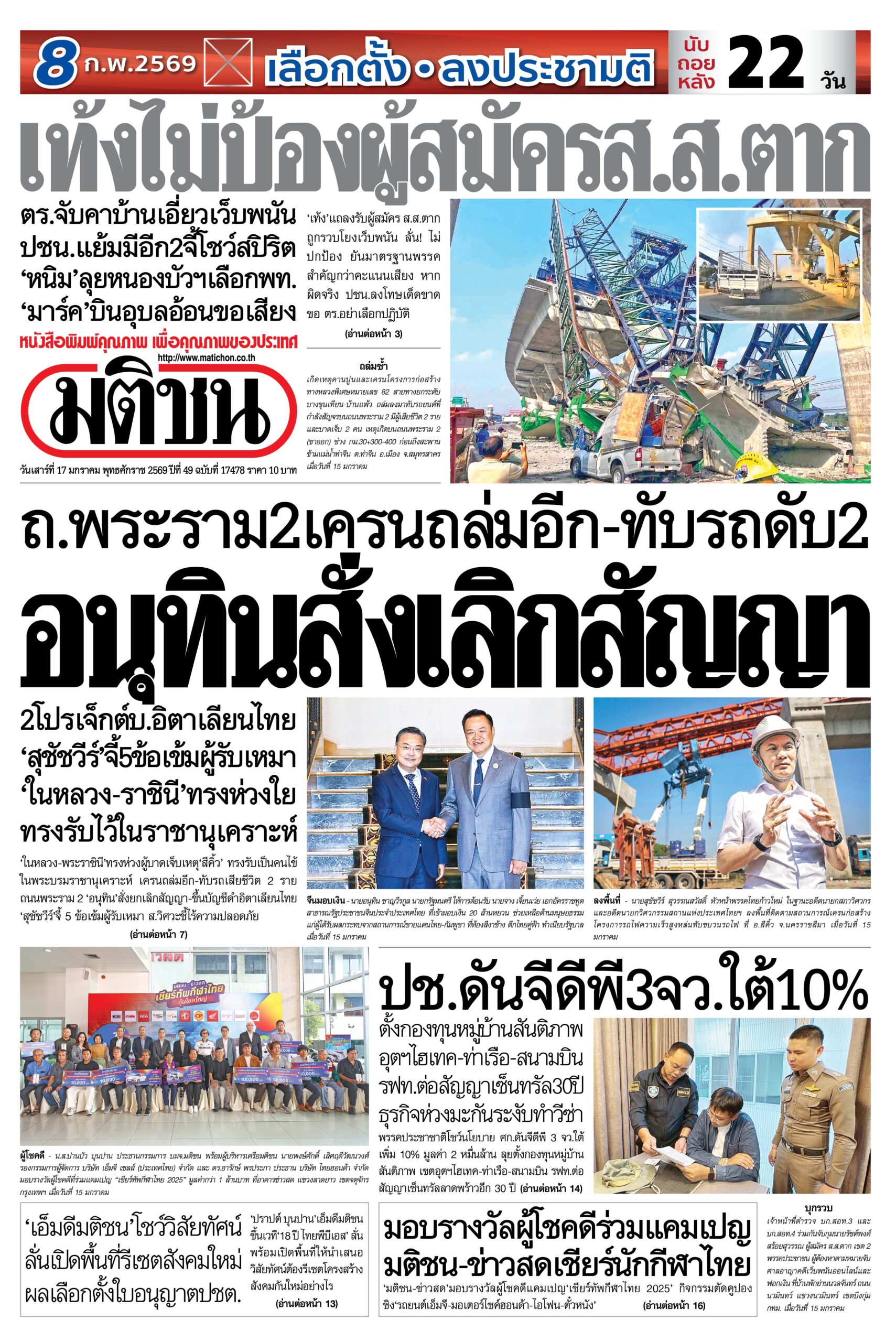 หน้า 1 หนังสือพิมพ์มติชน วันนี้