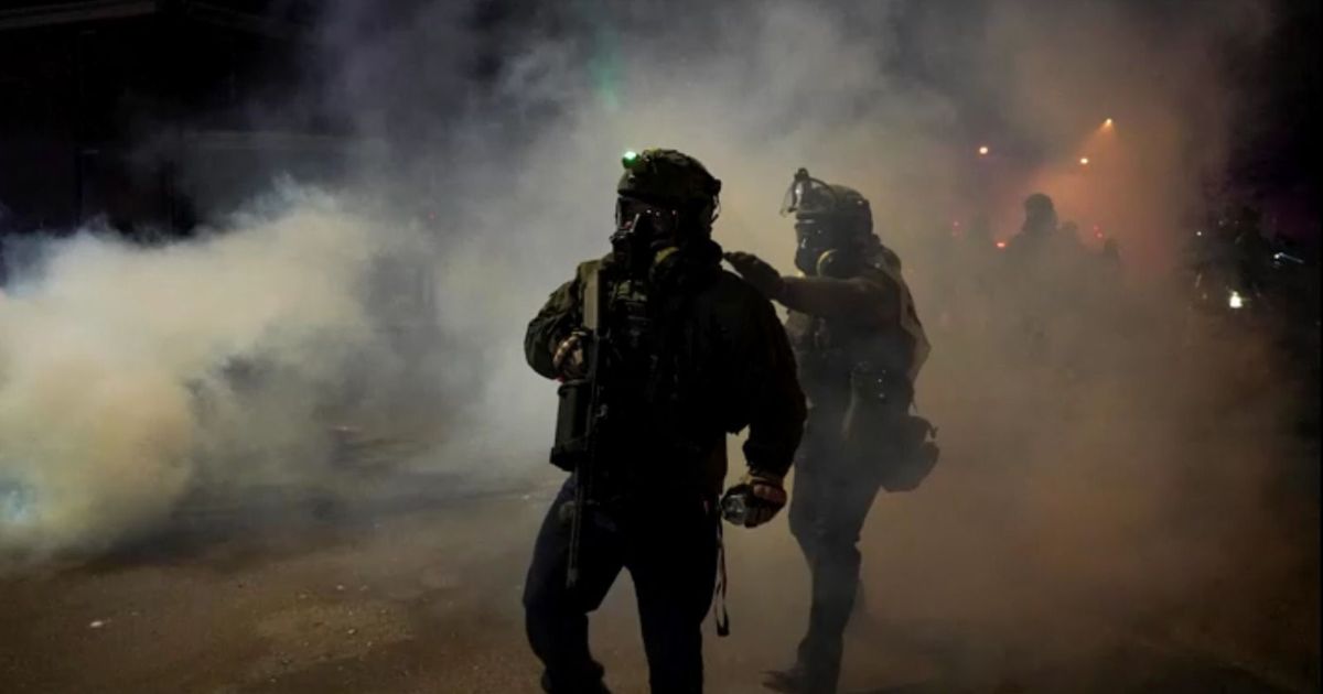 Manifestantes estavam confrontando um grande grupo de agentes em frente a um prédio federal