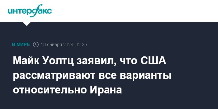 Все варианты действий относительно ситуации в Иране остаются на рассмотрении Вашингтона, заявил постоянный представитель США при ООН Майкл Уолтц."Президент Трамп - человек действия.