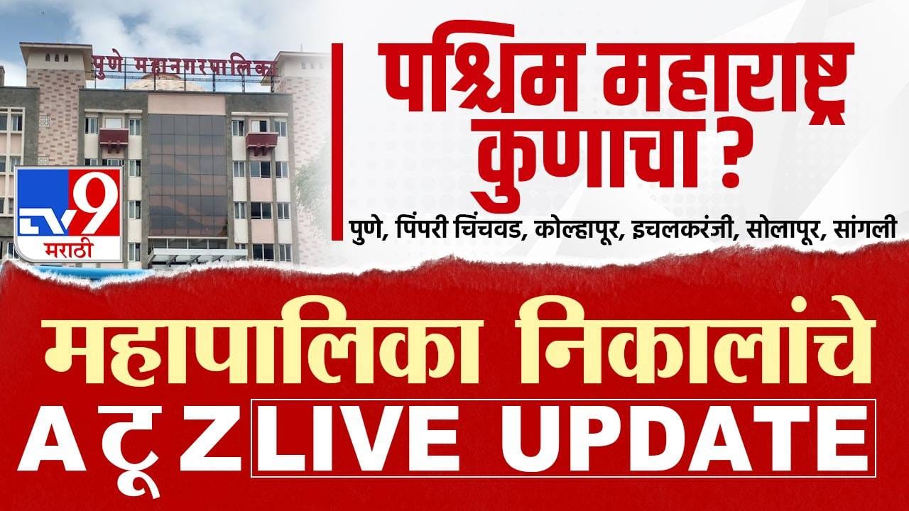 Pune Pimpri Chinchwad Kolhapur Ichalkaranji Solapur Sangli Election Results 2026 LIVE Counting in Marathi : राज्यातील 29 महापालिकांचे निकाल आज लागणार आहेत. त्यात पुणे, पिंपरी-चिंचवड, कोल्हापूर, इचलकरंजी, सोलापूर आणि सांगली या पश्चिम महाराष्ट्रातील सहा महापालिकांचा निकालही लागणार आहे. पाच ते आठ वर्षानंतर या महापालिकांची निवडणूक झाली. त्याचे निकाल आज येणार असल्याने या निकालाची सर्वांना उत्सुकता आहे. अवघ्या महाराष्ट्राचे लक्ष या निकालाकडे लागले आहे. खासकरून या महापालिकेत भाजपची कामगिरी कशी होते? याकडे राज्याचे लक्ष लागले असून निकालाचे मिनिटा मिनिटाचे अपडेट जाणून घ्या.