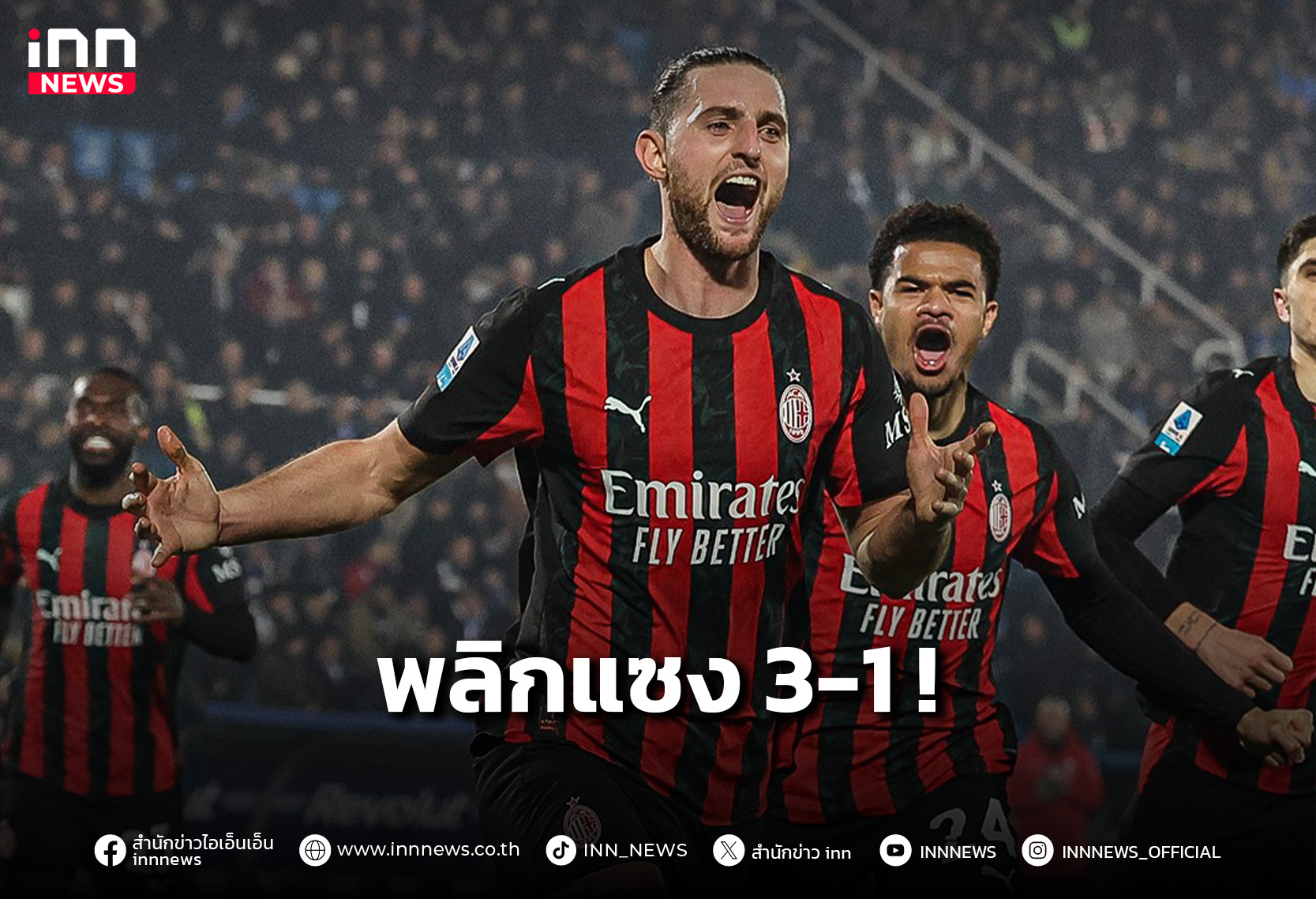 เอซี มิลาน ไล่อัดพลิกแซง โคโม่ 3-1 ตามหลัง อินเตอร์ มิลาน 3 แต้ม ศึกเซเรีย อา 2025/26