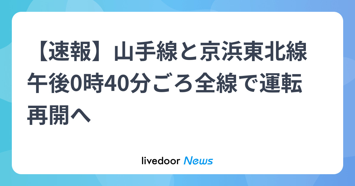 JR 山手線&京浜東北線を全線で運転再開へ…停電のため見合わせていた