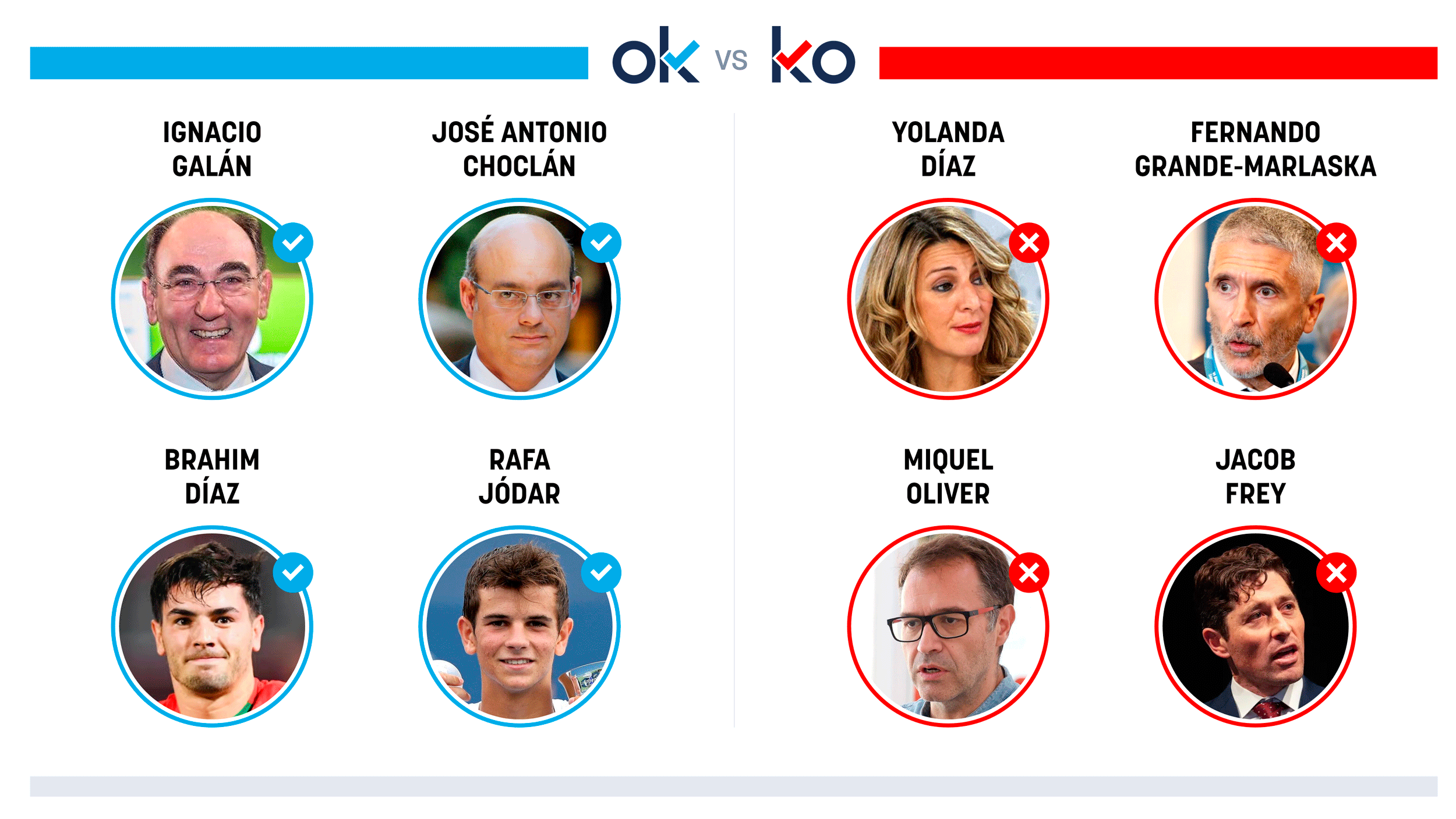 OK: Ignacio Galán Porque Iberdrola ha puesto en marcha su megaproyecto de línea eléctrica entre EEUU y Canadá de 1.400 millones. OK: José Antonio Choclán Porque es el abogado que ha contratado Julio Iglesias para defenderse de las acusaciones de agresión sexual. OK: Brahim Díaz Porque el madridista está siendo la gran figura de la … Continuar leyendo "Los OK y KO del viernes, 16 de enero de 2026"