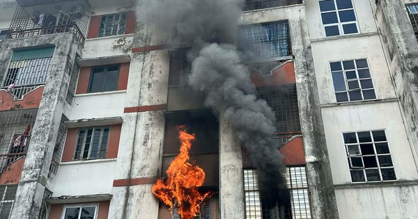 (NLĐO) – Khu vực tầng 2 chung cư bất ngờ bốc cháy khiến một số người dân lo lắng tháo cháy xuống dưới.