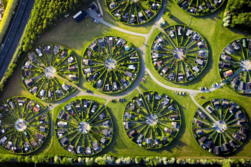 На периферијата на Копенхаген се наоѓа необичната населба Брондби, чии куќи се наоѓаат во совршени кругови опкружени со подеднакво совршено зеленило.