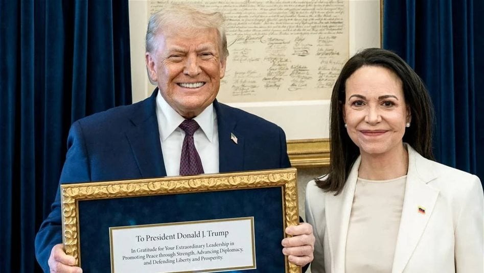 السومرية نيوز-دوليات أهدت زعيمة المعارضة الفنزويلية ماريا كورينا ماتشادو، الرئيس الأمريكي دونالد ترامب عن ميدالية جائزة نوبل للسلام التي منحت اليها، وذلك خلال اجتماع في البيت الأبيض، في خطوة اعتبرها مراقبون محاولة للتأثير على توجهات الإدارة الأمريكية تجاه مستقبل فنزويلا السياسي.