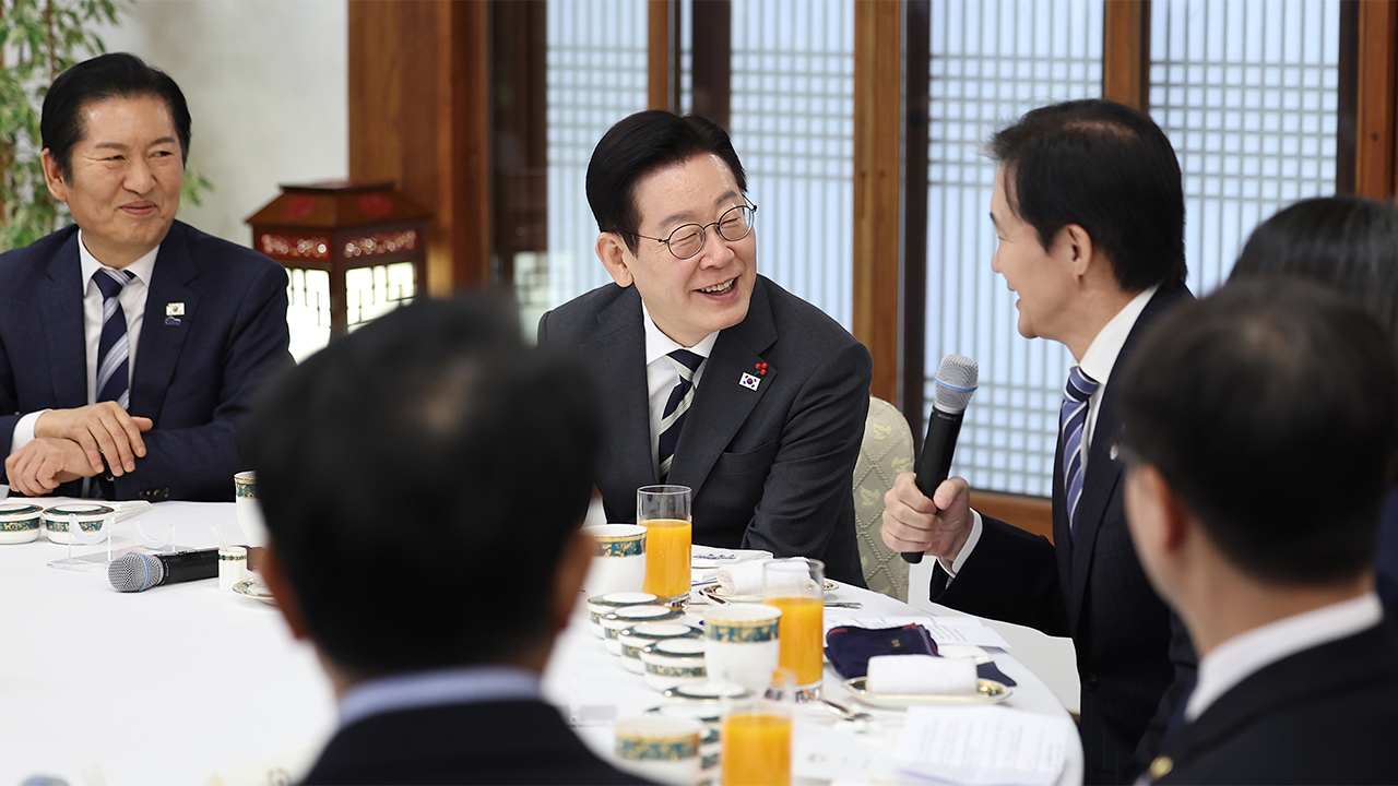 ▲ 조국혁신당 조국 대표가 16일 청와대 상춘재에서 이재명 대통령이 마련한 정당 지도부 초청 오찬에서 발언하고 있다.조국혁신당 조국 …