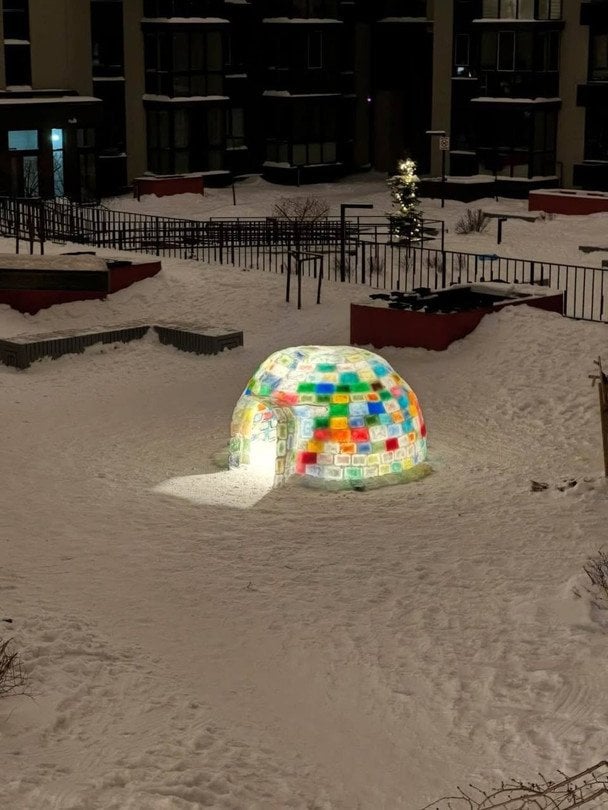 "Лапландія" у львівському дворі: батьки з дітьми збудували льодяну іглу (фото)