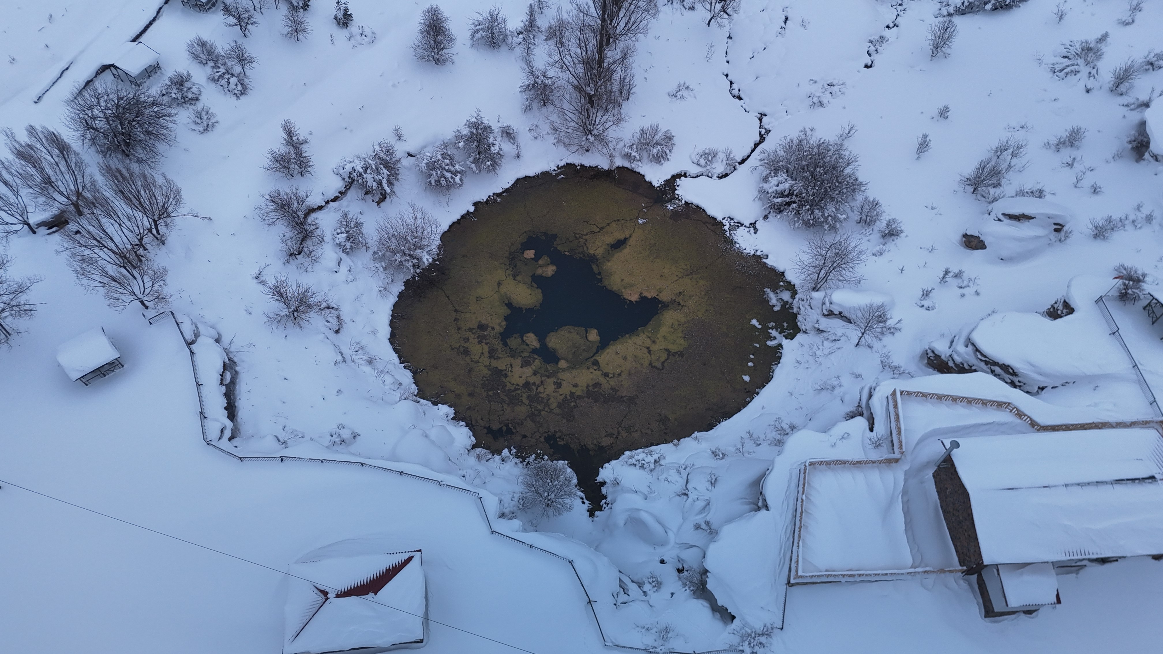 Sivas’ta bulunan ve her mevsim farklı güzelliğe bürünen Dipsizgöl ve şelalesi, yağan karla birlikte eşsiz manzaralar oluşturdu. Timsah gözüne benzetilen Dipsizgöl donmazken, Dipsizgöl Şelalesi’nde devasa buz sarkıtları meydana geldi.