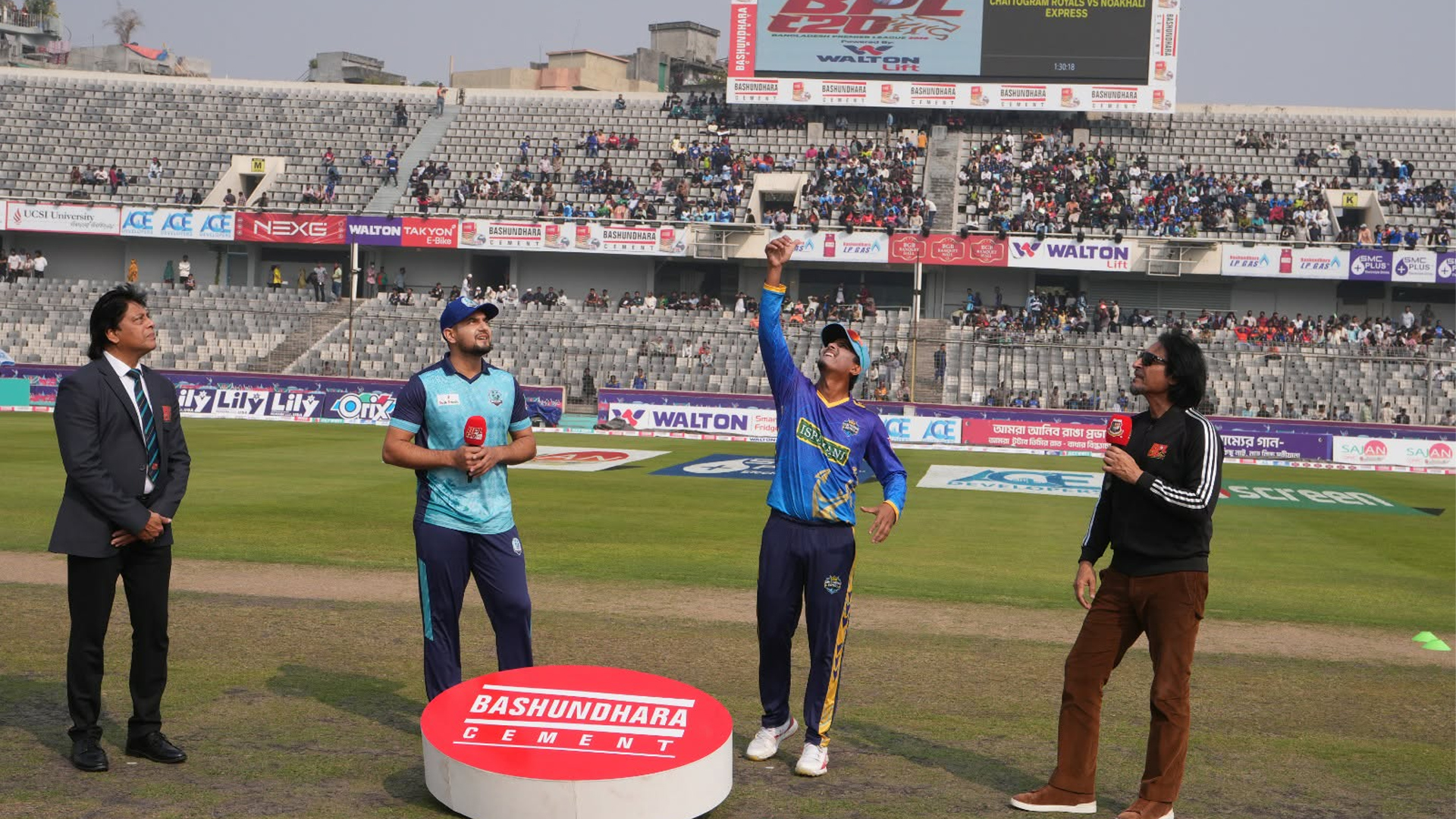 ক্রিকেটারদের বয়কটের পর আবার শুরু হয়েছে বিপিএল। দিনের প্রথম ম্যাচে নোয়াখালী এক্সপ্রেসের মুখোমুখি হয়েছে চট্টগ্রাম রয়্যালস। টস জিতে চট্টগ্রাম প্রথমে ফিল্ডিংয়ের সিদ্ধান্ত নিয়েছে।চট্টগ্রাম রয়্যালস এরই মধ্যে প্লে-অফে জায়গা করে নিয়েছে। তবে প্লে-অফে জায়গা পেতে এই ম্যাচে জয় পেতেই হবে নোয়াখালীর। ৭ ম্যাচে চট্টগ্রামের পয়েন্ট ১০, আর ৮ ম্যাচে নোয়াখালীর পয়েন্ট ৮।আরও পড়ুন: রংপুরের অধিনায়কত্ব থেকে সরে দাঁড়ালেন সোহান চট্টগ্রামের একাদশনাঈম শেখ, মাহমুদুল হাসান জয়, আসিফ আলী, তানভীর ইসলাম, শেখ মেহেদী হাসান, শরিফুল ইসলাম, মুকিদুল ইসলাম, আমির জামাল, মোহাম্মদ হারিস, মাহফিজুল ইসলাম ও হাসান নাওয়াজ।নোয়াখালীর একাদশহাবিবুর রহমান, হায়দার আলী, মেহেদী হাসান রানা, হাসান ইসাখিল, হাসান মাহমুদ, জাহির খান, ইহসানুল্লাহ, সৌম্য সরকার, সাব্বির হোসেন, জাকির আলী ও মুনিম শাহরিয়ার।