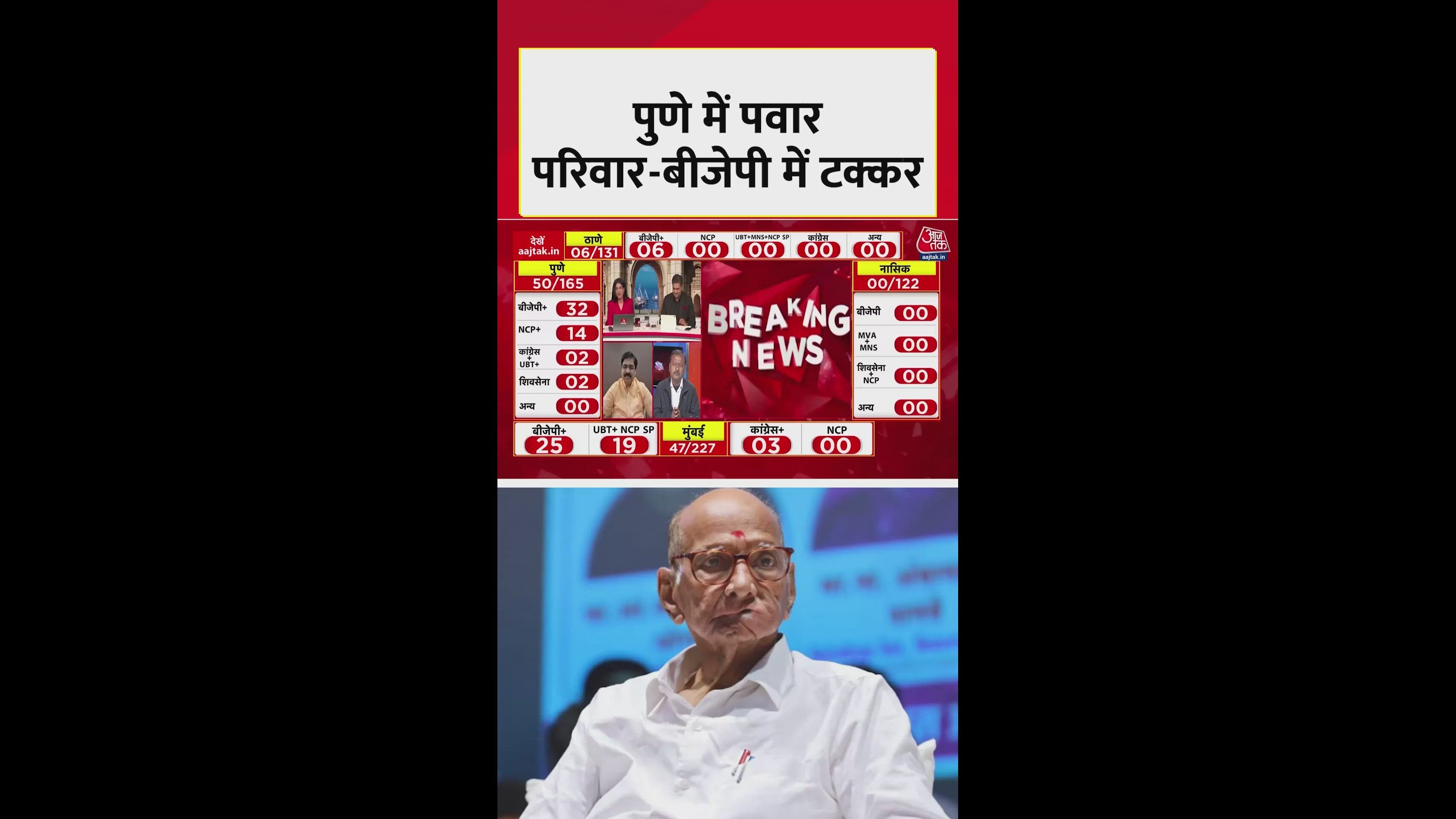बीएमसी चुनाव के रुझानों में पुणे में इस समय पवार परिवार और बीजेपी के बीच कड़ा मुकाबला चल रहा है. शरद पवार और अजित पवार साथ हैं और पवार परिवार 14 सीटों पर आगे है जबकि बीजेपी 32 सीटों पर बढ़त में है. अजित पवार और देवेंद्र फडणवीस के बीच सीधा मुकाबला चल रहा है.