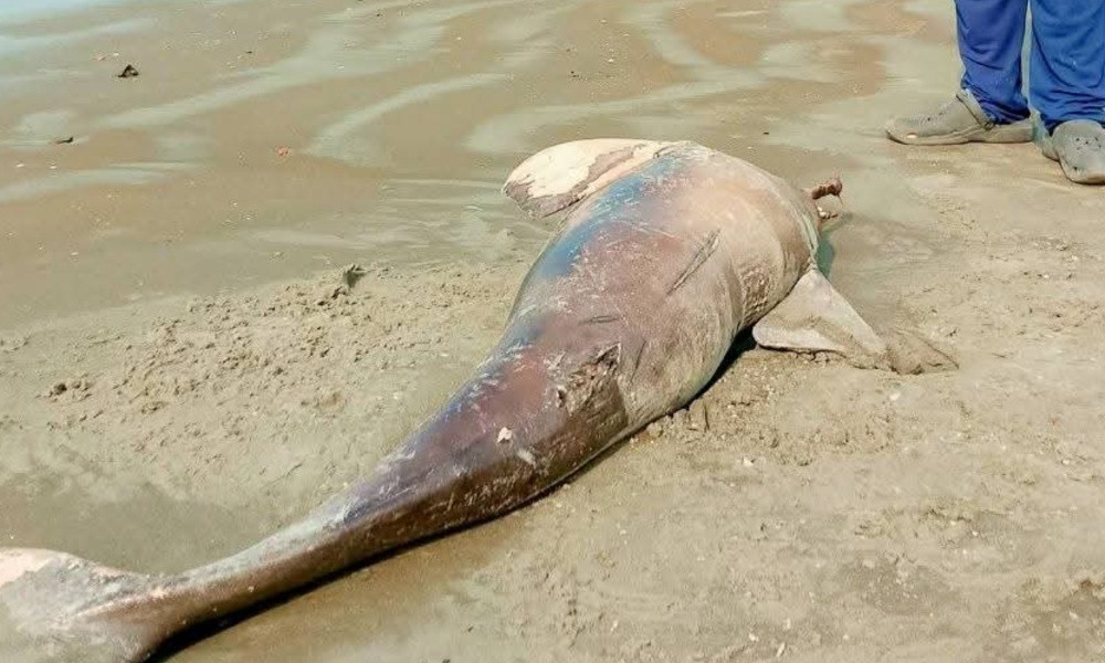 কুয়াকাটা সৈকতে ভেসে উঠল মৃত ডলফিন