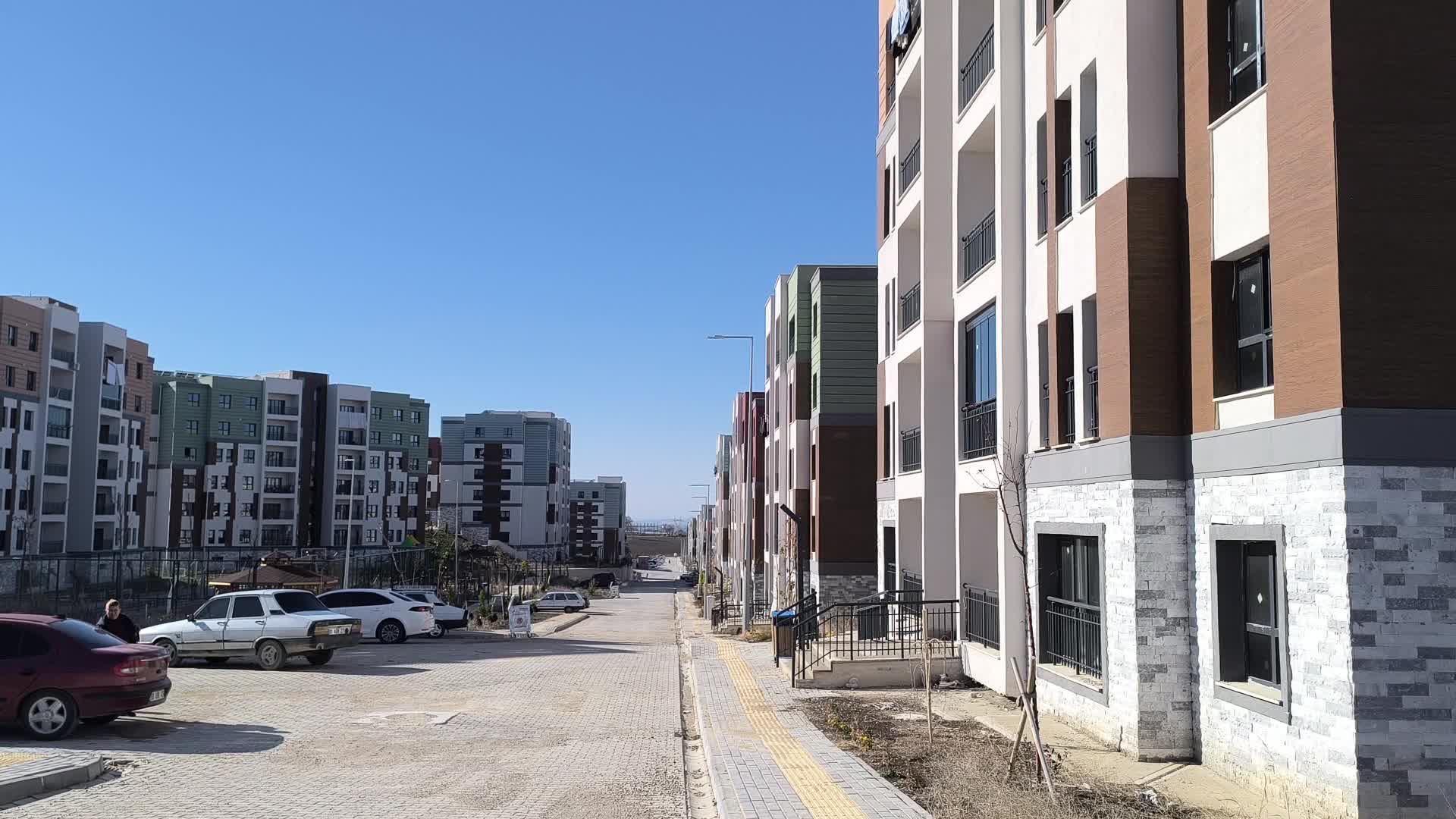 Osmaniye'de depremzedeler için yapılan TOKİ evlerinin ön cephesinde oluşan çökmeler vatandaşları tedirgin etti