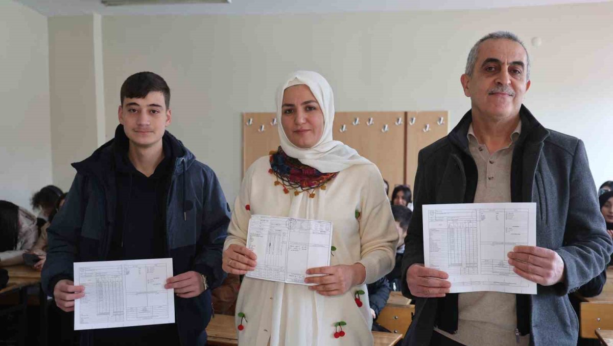 Elazığ Hıdır Sever Anadolu Lisesi'nde 20 yıl önce öğrenci olan öğretmen ile onun öğretmeni ve bugün karne alan öğrenci aynı karede buluştu.
