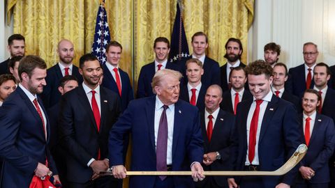 Latvijas hokeja aizsargs Uvis Jānis Balinskis kopā ar pēdējo divu gadu Stenlija kausa ieguvēju Floridas "Panthers" ceturtdien viesojās Baltajā namā pie ASV prezidenta Donalda Trampa.