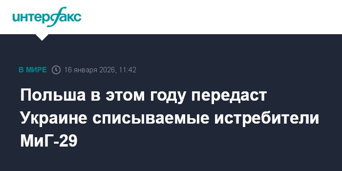 Польша в текущем году передаст Украине снимаемые с вооружения истребители МиГ-29, сообщил замглавы польского Минобороны Павел Залевский."Польша поставит Украине постсоветские истребители МиГ-29. (...) Решение принято", - сказал Залевский в эфире телеканала TVP World."На начальном этапе это будет до девяти самолетов", - добавил он.