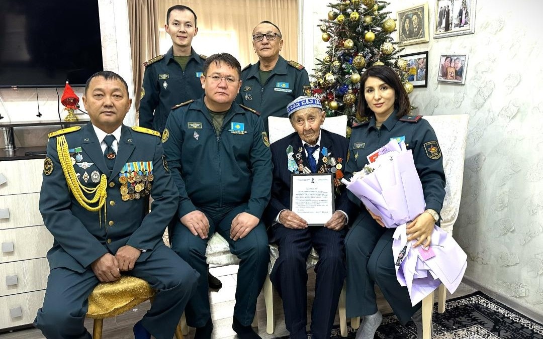 ТАЛДЫҚОРҒАН. KAZINFORM – Талдықорғанда Жетісу гарнизонының әскери қызметшілері, Қарулы күштердің ардагерлері мен «Жас сарбаз» әскери-патриоттық қозғалысының тәрбиеленушілері соғыс ардагері Ысқақ Әбілпейісұлы Құсайыновты 102 жасқа толған туған күнімен құттықтады.