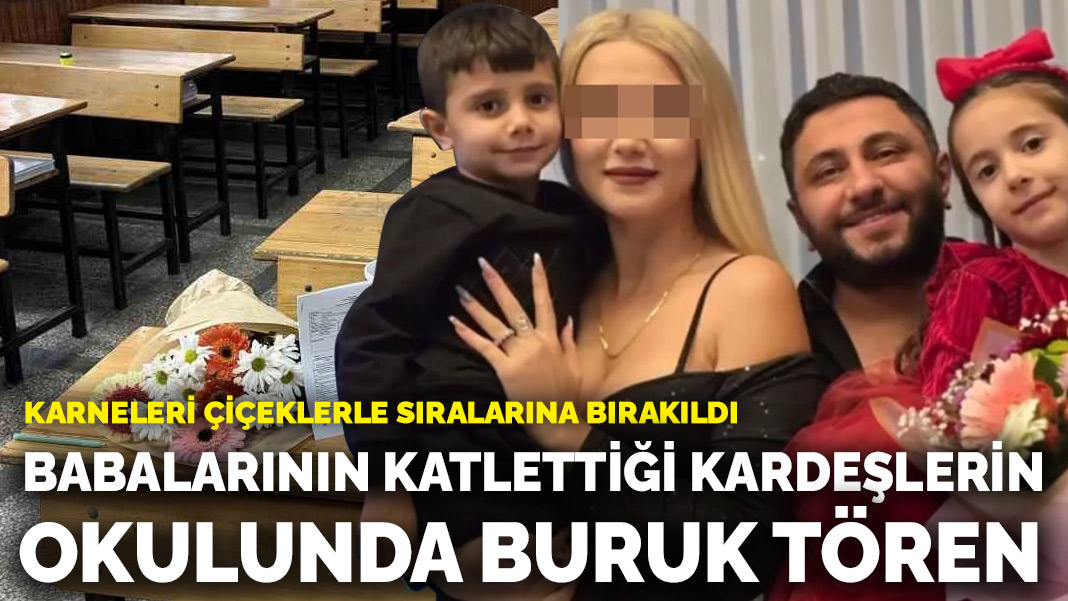 Adana’nın Sarıçam ilçesinde yaşanan aile faciasında, babaları tarafından öldürülen 8 yaşındaki Ada ile 6 yaşındaki Mert’in karneleri, eğitim gördükleri okulda çiçeklerle birlikte sıralarına bırakıldı.
