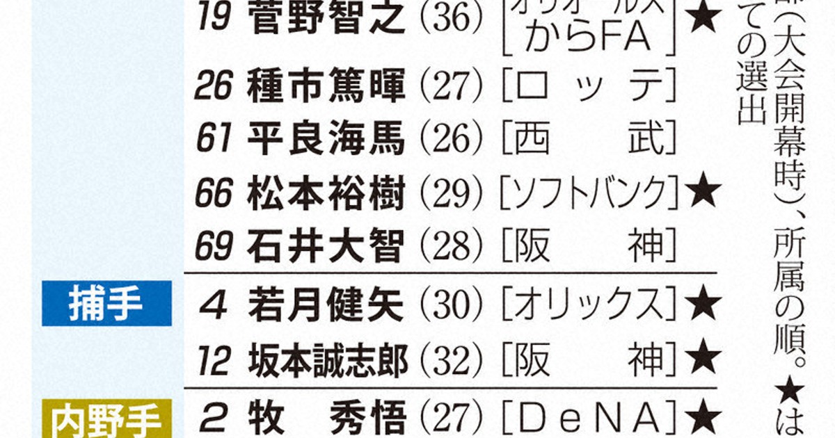 「侍ジャパン」11人追加発表 菅野智之、佐藤輝明ら選出