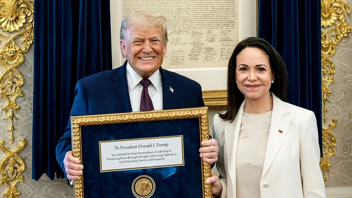 ট্রাম্পের হাতে উপহার হিসেবে নোবেল শান্তি পুরস্কারের পদক তুলে দিলেন মাচাদো