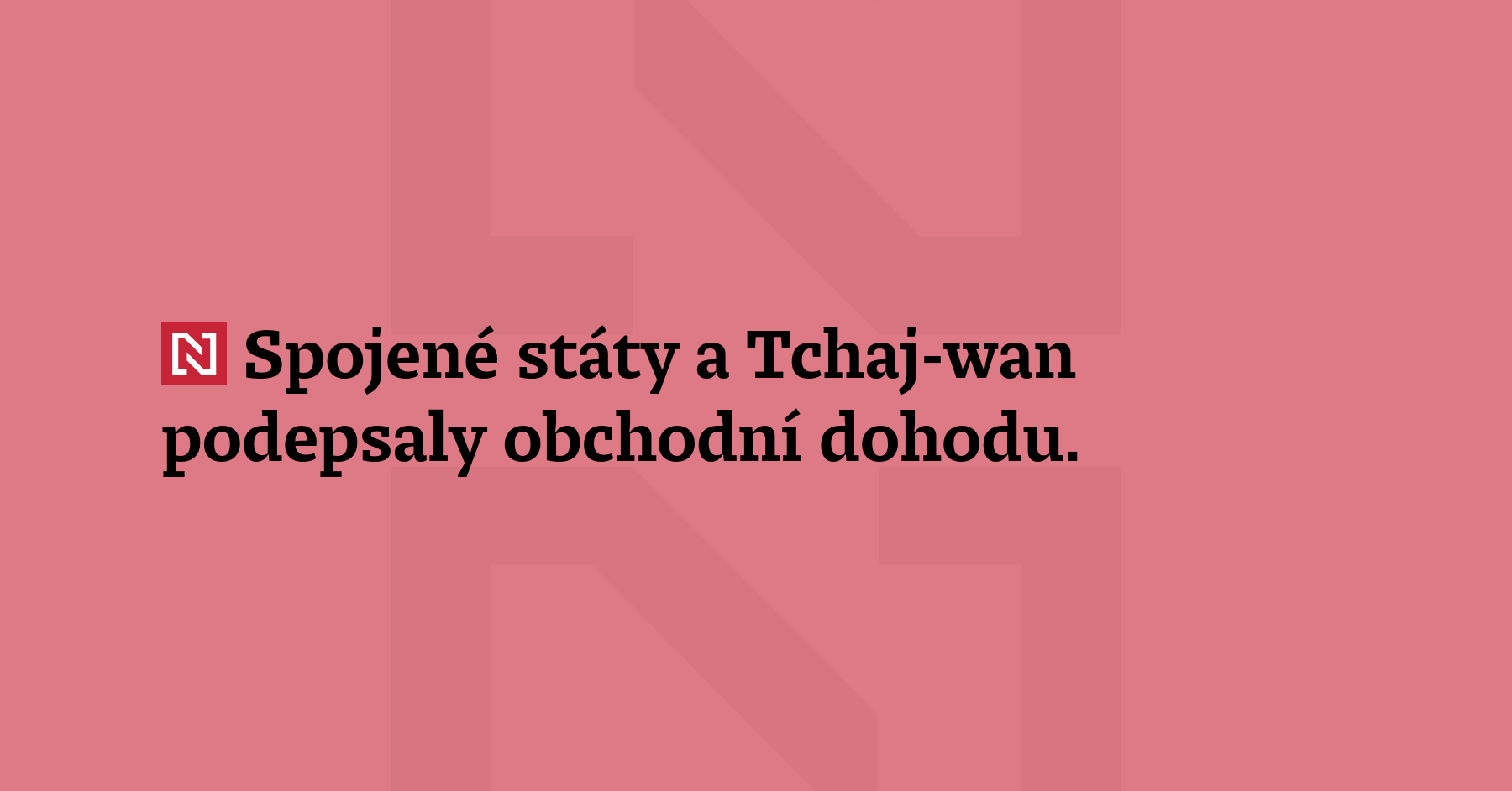 Spojené státy a Tchaj-wan podepsaly obchodní dohodu. Americká dovozní cla na tchajwanské zboží se sníží z 20 % na 15 %. Jedná se o stejnou sazbu, jaká platí pro výrobky z EU a Japonska. (Reuters)